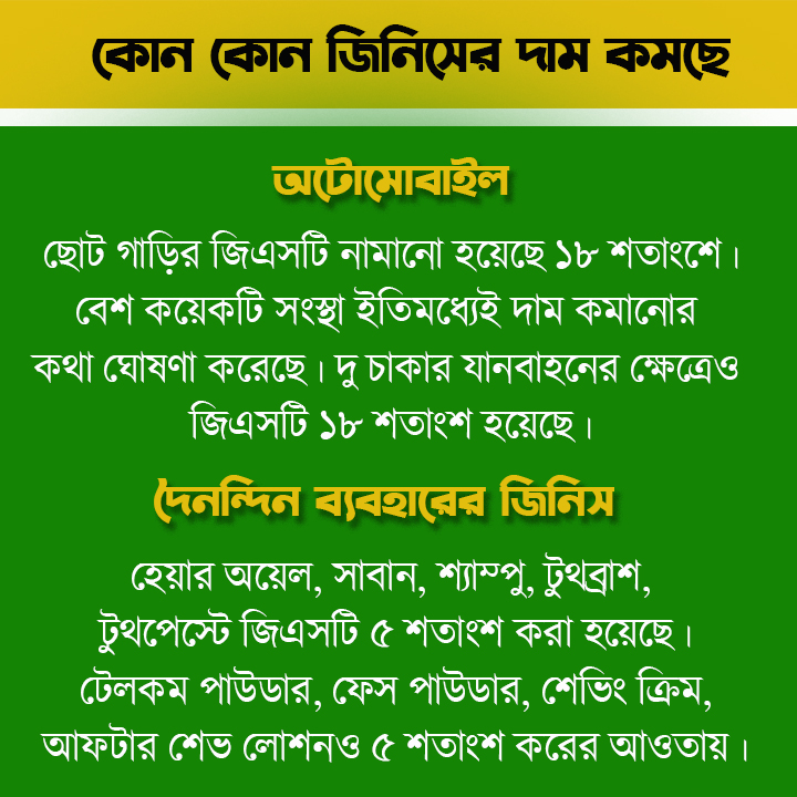 এবার দেখে নেওয়া যাক কোন কোন জিনিস সস্তা হচ্ছে
