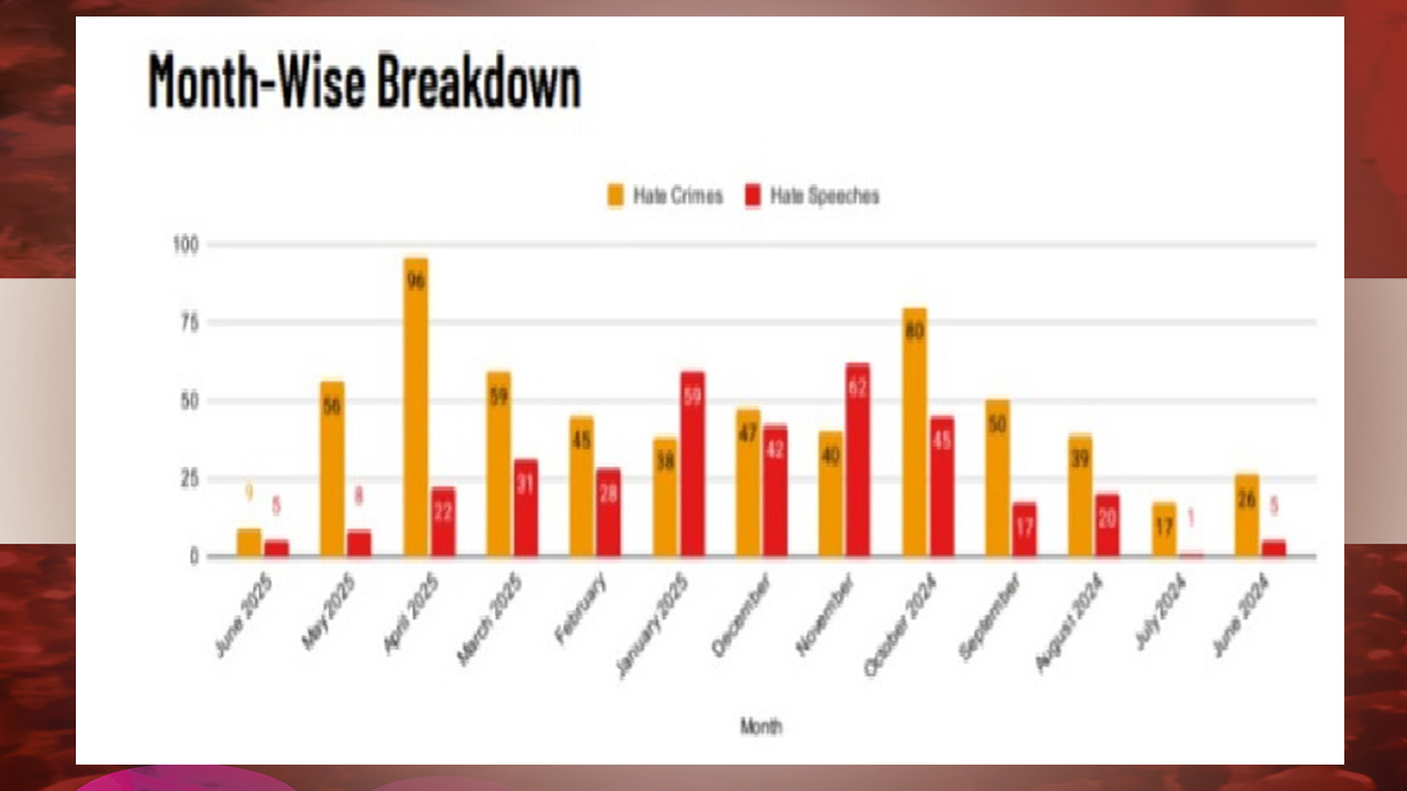 ৭ জুন ২০২৪ থেকে এক বছর, অর্থাৎ ৭ জুন ২০২৫ অবদ্ধি এই রিপোর্টের তথ্য সংগ্রহ করা হয়েছিল। রিপোর্ট অনুযায়ী, সবচেয়ে বেশি হেট ক্রাইমের ঘটনা ঘটেছে উত্তরপ্রদেশে, তারপরেই রয়েছে মহারাষ্ট্র ও মধ্যপ্রদেশ মিলে মোট ১২ টি রাজ্যে। যার সবই বিজেপি শাসিত রাজ্য। অর্থাৎ একদিকে শাসক দলের নেতারা বারবার সংখ্যালঘুদের সুরক্ষার প্রতিশ্রুতি দিলেও বাস্তবে দেখা যাচ্ছে, এই রাজ্যগুলিই বিদ্বেষমূলক অপরাধের আঁতুড়ঘর হয়ে উঠেছে। বিজেপি সমর্থকদের চড়ানো সুর, “হিন্দু খাতরে মে হ্যায়” এই হিংসার আগুনে হাওয়া দেওয়ার কাজ করছে।