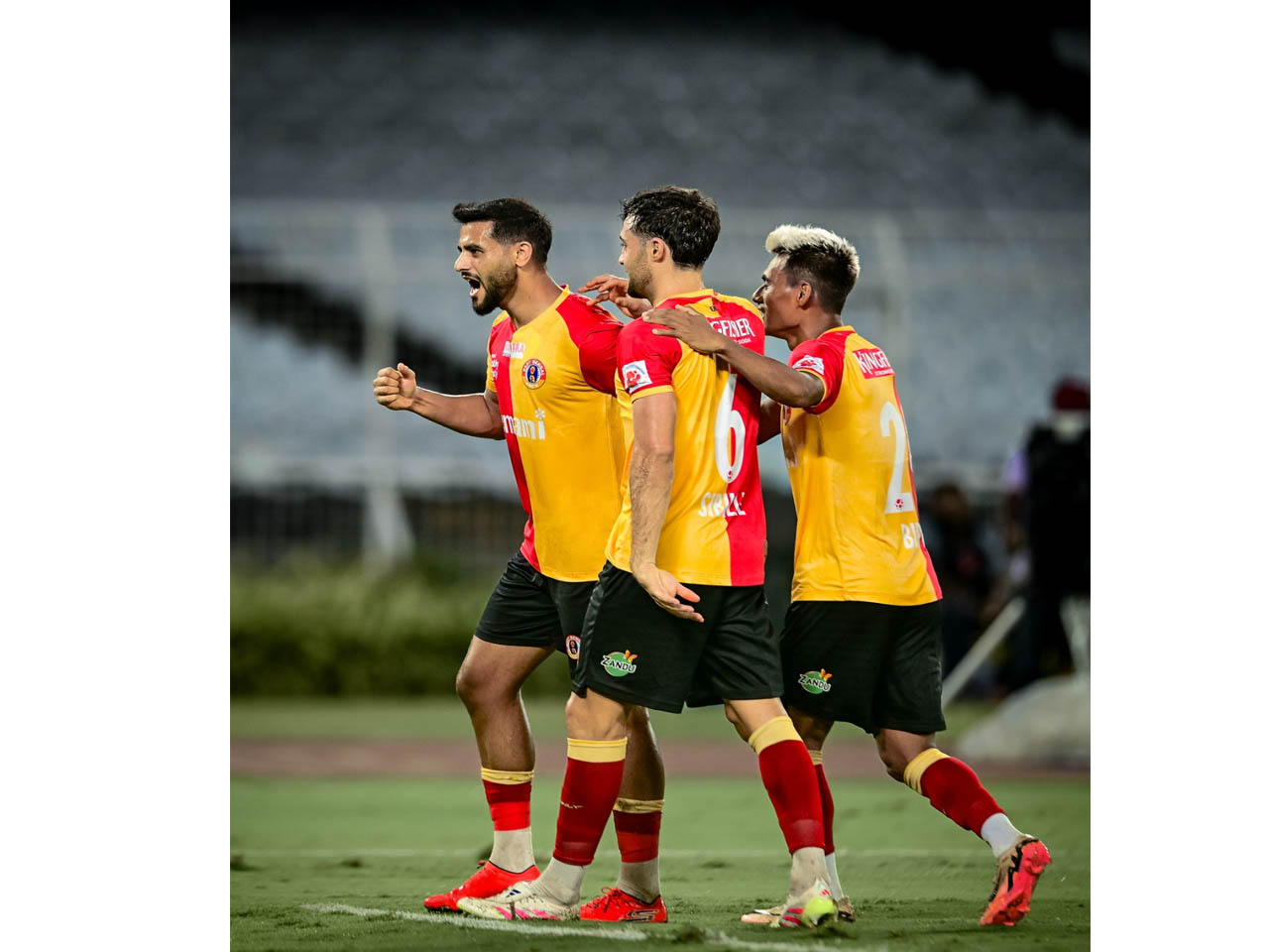 স্পোর্টস রিপোর্টার : প্রিয় সমর্থক রাহুলের স্মৃতিতে আবেগে ভাসছে গ্যালারি, অন্যদিকে মাঠে ১০ জন নিয়ে লড়াই, সব মিলিয়ে বৃহস্পতিবার যুবভারতী ক্রীড়াঙ্গনে এক অবিস্মরণীয় সন্ধের সাক্ষী থাকল ইস্টবেঙ্গল। বেঙ্গালুরু এফসি-র বিরুদ্ধে তিনবার পিছিয়ে পড়েও, শেষমুহূর্তে গোল করে ৩-৩ ড্র করল লাল হলুদ ব্রিগেড।তাতে উঠে এল লিগ তালিকার তিন নম্বরেও।