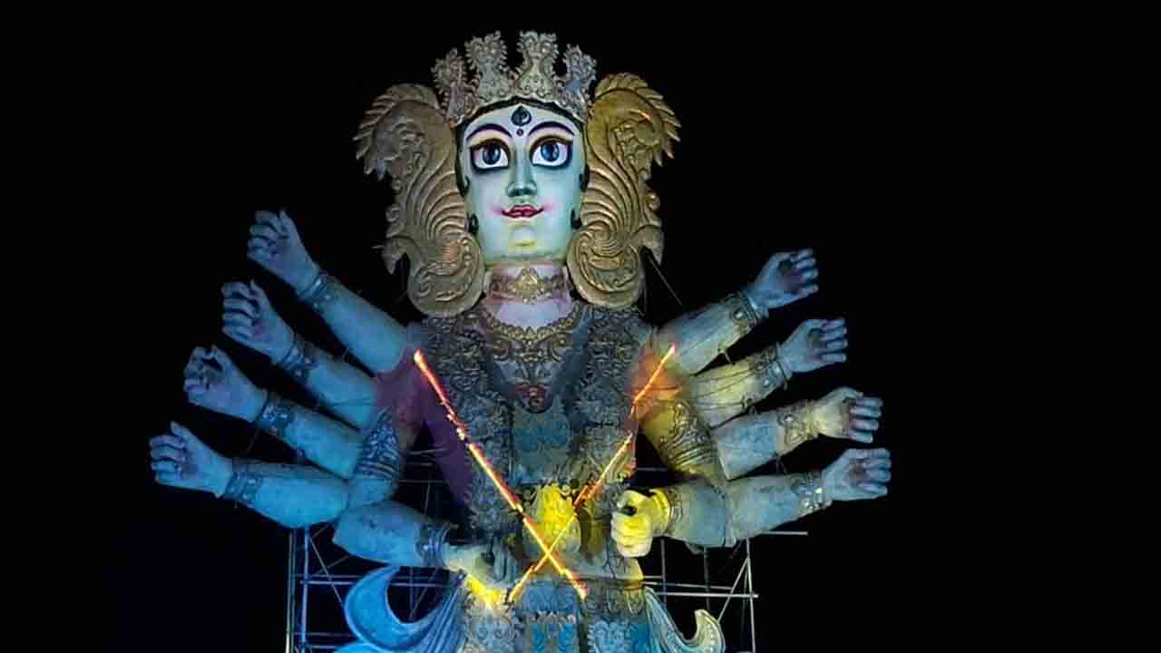 তবে প্রতীকী অস্ত্র থাকবে মাটিতে রাখা। এমনটাই জানালেন পুজো উদ্যোক্তারা। দীর্ঘ ১৮ মাস ধরে ৫০ জন মিলে এই উচ্চ মাতৃমূর্তি তৈরী করেছেন বলে জানান পুজো উদ্যোক্তারা। রাজ্য সরকার এবং জেলা পুলিশ প্রশাসন ছাড়া এই পুজো সম্ভব হত না বলে দাবি পুজো উদ্যোক্তাদের। তাই রাজ্যের মুখ্যমন্ত্রী এবং জেলা পুলিশকে বিশেষ ভাবে সম্মান জানিয়েছেন পুজো উদ্যোক্তারা।