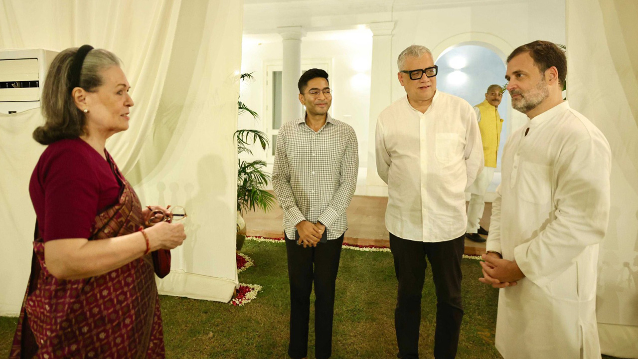 নিজস্ব সংবাদদাতা : সাম্প্রতিককালে বিরোধী জোটের দৃষ্টান্তমূলক চিত্রটি ফুটে উঠল বৃহস্পতিবার রাহুল গান্ধীর বাসভবনে নৈশভোজে। একত্রিত হলেন ইন্ডিয়া জোটের ২৫টি দলের প্রায় ৫০ জন শীর্ষ নেতা। যাঁদের মধ্যে ছিলেন, তৃণমূলের সর্বভারতীয় সাধারণ সম্পাদক অভিষেক বন্দ্যোপাধ্যায়, ডেরেক ও ব্রায়েন, সমাজবাদী পার্টির অখিলেশ যাদব, সিপিআই (এম)-এর এমএ বেবি, এনসিপি-এসপি নেতা শারদ পাওয়ার, ফারুক আবদুল্লাহ, পিডিপির মেহবুবা মুফতি, আরজেডির তেজস্বী যাদব, শিবসেনা-ইউবিটি প্রধান উদ্ধব ঠাকরে, ডিএমকে-র তিরুচি শিবা, সিপিআই(এম), সিপিআই (এম), সিপিআই (এমপিআই), সিপিআই (এমপিআই), সিপিআই (এমপিআই) এর প্রথম সারির নেতারা। ছিলেন দীপঙ্কর ভট্টাচার্য ও এমএনএম প্রধান কমল হাসান, কর্ণাটকের মুখ্যমন্ত্রী সিদ্দারামাইয়া, হিমাচল প্রদেশের মুখ্যমন্ত্রী সুখবিন্দর সিং সুখু এবং তেলেঙ্গানার মুখ্যমন্ত্রী রেভান্থ রেড্ডিও।
