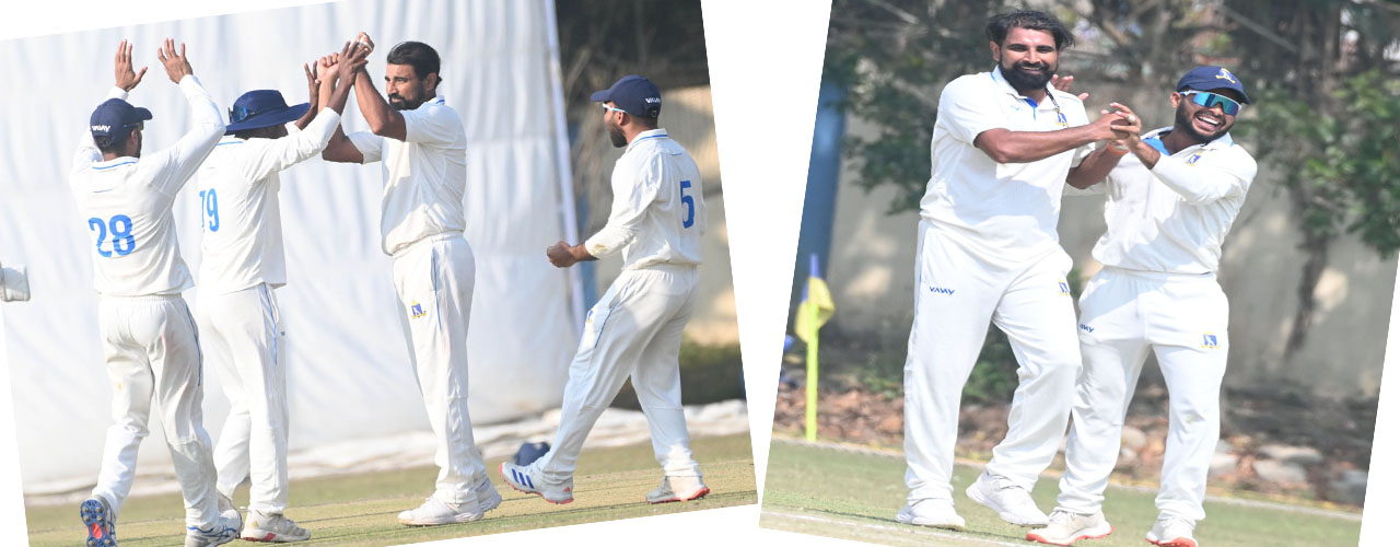 এরপর খেলতে নেমে ৭.১ ওভারে ১৩ রানের মধ্যে প্রথম তিন উইকেট হারায় জম্মু ও কাশ্মীর। এরপর পরিস্থিতি সামাল দেন অধিনায়ক পরশ ডোগরা ও আবদুল সামাদ। চতুর্থ উইকেট জুটিতে তাঁরা ১৪৩ রান যোগ করেন। যদিও দলগত ১৫৬ রানের মাথাতেই সামাদ ও ডোগরা সাজঘরে ফেরেন। সামাদ ৮২ ও ডোগরা ৫৮ রান করেন। আবিদ মুস্তাক ২৬ ও কানহাইয়া ওয়াধাওয়ান ১০ রানে অপরাজিত আছেন। মহম্মদ শামি তিনটি ও মুকেশ কুমার ২টি উইকেট নিয়েছেন।