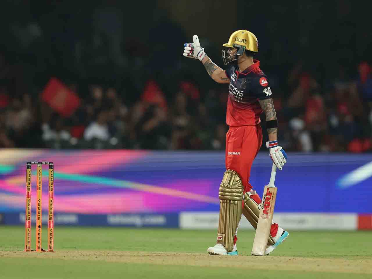 জবাবে ব্যাট করতে নেমে ১৫.৪ ওভারেই খেলা শেষ করে দেয় বিরাট কোহলির ব্যাট। যোগ্য সঙ্গ দেবদূত পারিক্কলের। শুরুতে অবশ্য ধাক্কা খেয়েছিল বেঙ্গালুরুও। মাত্র ৮ রান করে ফিরে যান ওপেনার ফিল সল্ট। সেখান থেকেই দেবদূত পারিক্কলকে নিয়ে দলের রানকে এগিয়ে নিয়ে যাওয়ার লক্ষ্যে ব্যাট করতে শুরু করেন কোহলি। দু’জনের ব্যাট থেকেই আসে হাফ সেঞ্চুরি। ২৬ বলে সাতটি বাউন্ডারি ও চারটি ওভার বাউন্ডারি হাঁকিয়ে ৬১ রান করে আউট হন পারিক্কল। ১২ বলে ঝোড়ো ৩১ রানের ইনিংস খেলেন অধিনায়ক রজত পাতিদার। রানের খাতাই খুলতে পারেননি জিতেশ শর্মা। তবে লক্ষ্যে পৌঁছতে সমস্যায় পড়তে হয়নি গতবারের চ্যাম্পিয়নদের। ৩৮ বলে পাঁচটি বাউন্ডারি ও পাঁচটি ওভার বাউন্ডারি হাঁকিয়ে ৬৯ রান করে অপরাজিত থাকেন বিরাট কোহলি। ১৬ রানে অপরাজিত তাকেন টিম ডেভিড।
