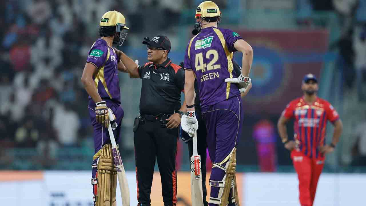 এলএসজি হালকা একটি আপিল করেছিল; তাদের যুক্তি ছিল, ব্যাটার বলের লাইনে আসার জন্য নিজের দৌড়ের দিক পরিবর্তন করেছিলেন। তৃতীয় দেখে বিচার দেন, রঘুবংশীর বাঁক নেওয়ার পরিধি বা ‘টার্নিং রেডিয়াস’ স্বাভাবিকের চেয়ে কিছুটা বেশিই ছিল। তিনি বলটির দিকে তাকিয়েও ছিলেন, এবং তৃতীয় আম্পায়ারের মতে—তিনি সত্যিই নিজের দৌড়ের দিক পরিবর্তন করেছিলেন। এবং তাঁকে আউট দেওয়া হয়। যা দেখে রীতিমতো চমকে যায় কেকেআর শিবির।