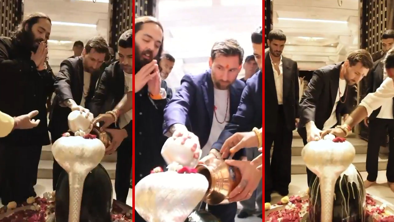 ওঙ্কার ডেস্ক: ভারত সফরে এসেছিলেন মেসি। কলকাতা, হায়দরাবাদ, মুম্বই, দিল্লির পর সফরসূচি বদল করে গিয়েছিলেন জামনগর। আম্বানিদের বনতারায়। সেখানেই এক্কেবারে ভিন্ন রূপে দেখা গেল মেসিকে। বিশ্বকাপজয়ী আর্জেন্টাইন মহাতারকা বনতারার ভিতরে থাকা শিবমন্দিরে ঢুকে শিবলিঙ্গে জল ঢালেন, দুধ ঢেলে অভিষেক করেন। ফুল ও বেলপাতা অর্পণ করে মাথা ঝুঁকিয়ে প্রণাম পর্যন্ত করেন। তখন তার গলায় ছিল রুদ্রাক্ষ। শুধু তাই নয়, সকলের সঙ্গে গলা মিলিয়ে উচ্চারণ করেন—“হর হর মহাদেব।” সেই মুহূর্তের ভিডিও ভাইরাল নেটদুনিয়ায়।