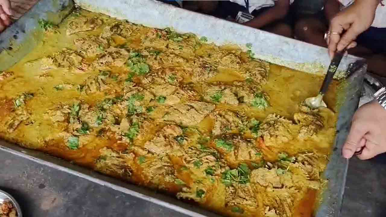 মেনুতে ছিল রাজকীয় আয়োজন— গরম ভাত, ইলিশ মাছ ভাজা, পমফ্রেট মাছের ঝোল, চিংড়ি-কচুর তরকারি, সঙ্গে ছিল চিলি চিকেন, দই, মিষ্টি আর খাসা পাপড়। সাধারণ দিনে মিড-ডে-মিলে এমন এলাহি ভোজের স্বাদ পাওয়া যায় না। তাই খুদে পড়ুয়াদের উচ্ছ্বাস ছিল চোখে পড়ার মতো। আনন্দে কেউ গাইছিল গান, কেউ আবার খেলার ফাঁকে খাওয়ার মজা নিচ্ছিল। শিশুদের হাসি আর উল্লাসে ভরে উঠেছিল বিদ্যালয়ের চত্বর।